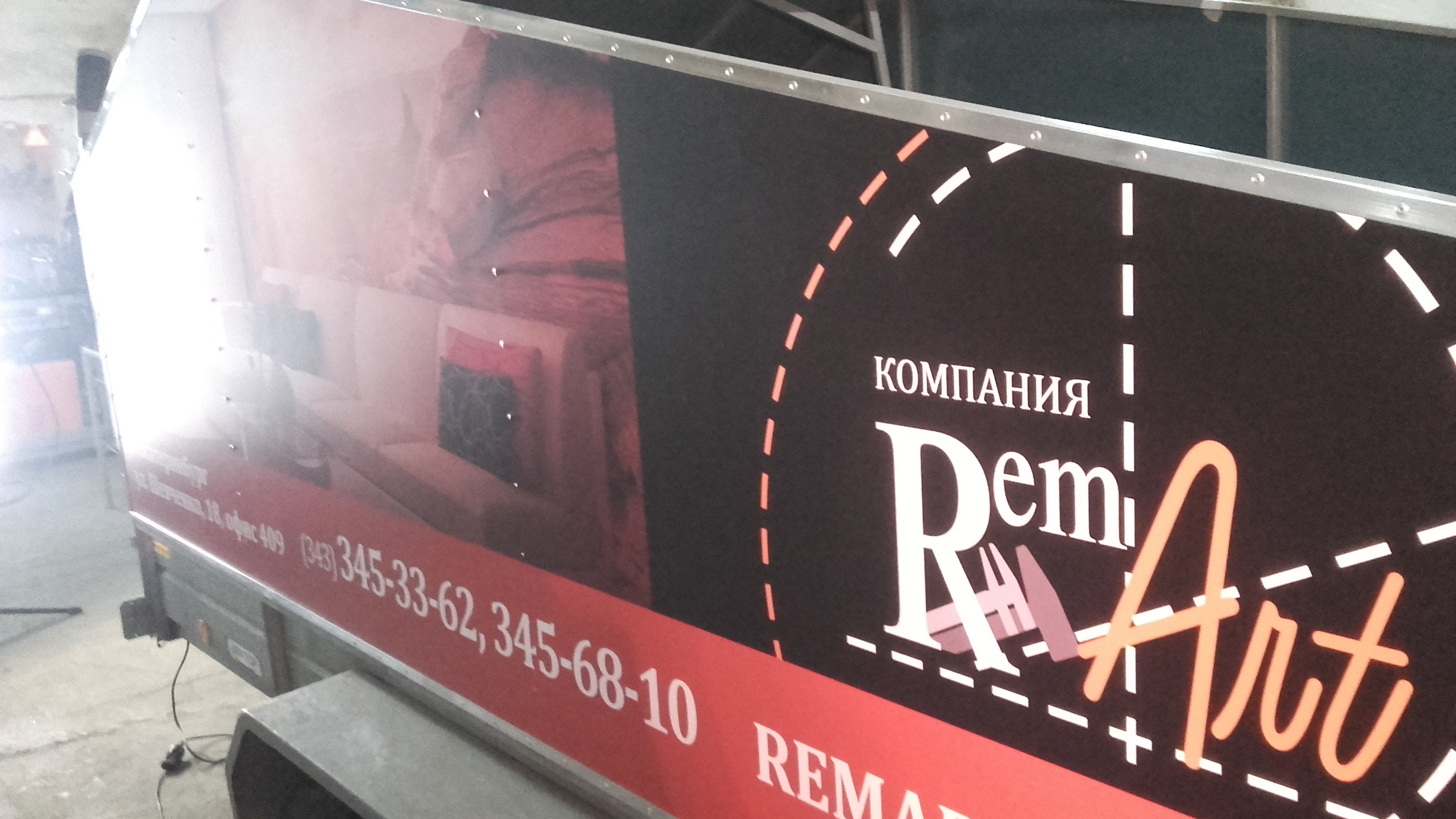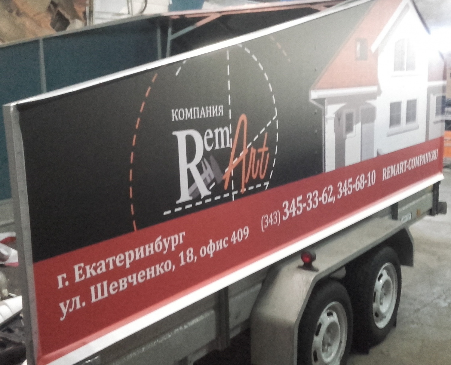 На улицах Екатеринбурга ездит большое количество брендированных автомобилей. Такой способ рекламирования своей фирмы и донесения информации до потребителя очень прост и эффективен. Заказать брендирование автомобиля можно в Print Ural. Наша компания состоит из профессионалов, которые знают свое дело и выполняют работу качественно. Доказательством этому довольный клиент - Rem Art. Екатеринбургская организация Rem Art оказывает весь комплекс ремонтно-строительный работ, начиная созданием дизайна-макета и заканчивая оформлением интерьера, установкой мебели. Рем Арт принимают заказы по строительству домов из дерева. В автопарке этой компании есть прицепы, которые перевозят все нужные строительные материалы. Естественно, для большей узнаваемости и привлечения внимания Rem Art решили брендировать кузов служебного транспорта у нас. Для каждого заказчика наши дизайнеры разрабатывают рекламное сообщение под размер автотранспорта, а затем мы оклеиваем кузов специальной пленкой, на которой напечатано изображение. Готовую работу мы всегда выкладываем к себе на сайт с информацией о клиенте. Хотите брендировать авто и получить дополнительную рекламу на нашем сайте? Тогда заказывайте оклейку автомобиля в Print Ural!